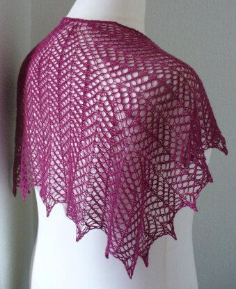 I love pretty lacy shawls, but I also love simplicity, this shawl combines the two; simple lace that is easy to tackle which results in a wonderful shawl. But the best thing about this pattern is it’s multiplicity, there are two different shapes to chose from and two different styles and you can knit it in any weight yarn.