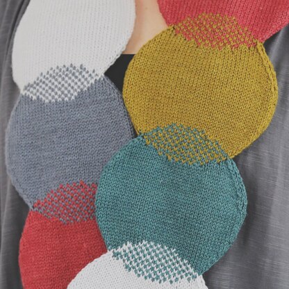 A striking infinity scarf knit in the round using shaping and colourwork to form overlapping circles. Venn is a unique and fun knit inspired by the designer Rachel Castle’s screen prints. Venn can be worn looped once around the neck or doubled for extra warmth.