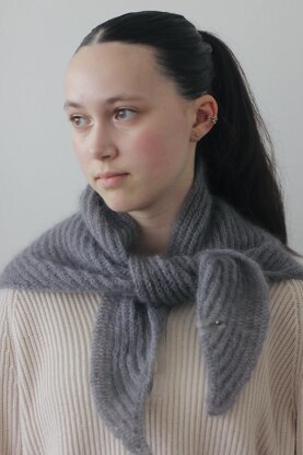 Yarn amount: I used 2 balls of DROPS Kid-Silk for the light sample, and slightly less for the gray (smaller) version with leftovers. To get proper drape and coverage, I suggest not going below the listed finished measurements for the smaller size, and choosing your yarn with that in mind.