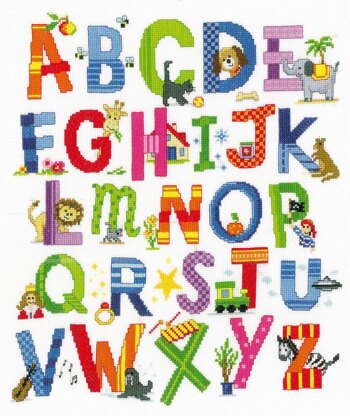 Kit contains chart and instructions, 14 count white Aida fabric and presorted DMC stranded cotton threads on a loaded thread organiser.