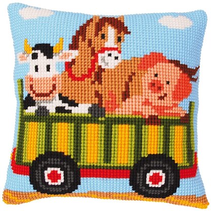 Vervaco Animals Wagon Cross Stitch Cushion Kit - PN-0008484 - 40 x 40 cm