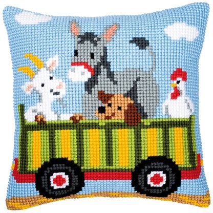 Vervaco Animals Wagon Cross Stitch Cushion Kit - PN-0008485 - 40 x 40 cm