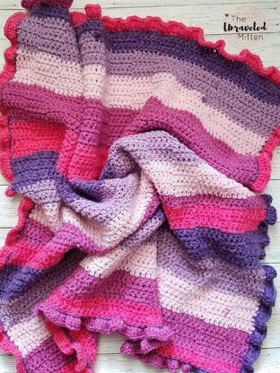 If you can make double and single crochets and count to five, you can make this quick and easy blanket with a fun ruffled edge.