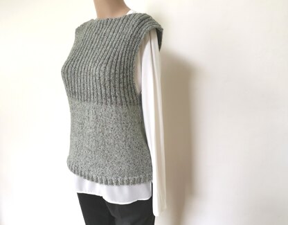 Vest Tara is a versatile piece of clothing that can be dressed up or down, depending on the occasion. I have knit these vests with a mix of cotton, merino and alpaca (Lana Grossa - Ecopuno print), which is more suitable for spring, summer and fall. If you would change the yarn to wool this vest will be for winter layering.