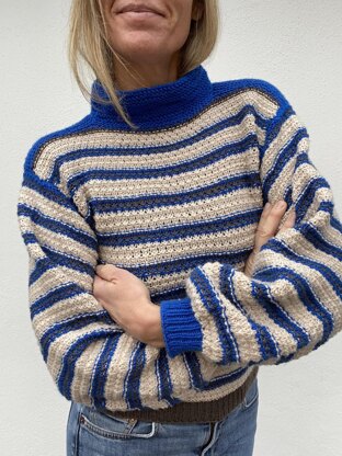 VesterbyCrea No 37 er en tæt sweater strikket med Garter Slip Stitch med flere farver. Modellen strikkes oppefra og ned. I begyndelsen af bærestykket strikkes rygstykket med Garter Slip Stitch. Forstykkerne strikkes én ad gangen med et par udtagninger og strikkes sammen til ét forstykke. Forstykket strikkes frem og tilbage på samme måde som rygstykket. Kroppen strikkes ved at samle for-og bagstykket, hvor der strikkes videre rundt i Garter Slip Stitch. Kroppen afsluttes med en ribkant og elastisk aflukning. Ærmerne samles op langs armåbningerne og strikkes rundt med Garter Slip Stitch og afsluttes med en ribkant og elastisk aflukning. Halskanten strikkes ved at samle masker op og strikkes rundt i retstrik. Sweateren er monteringsfri.