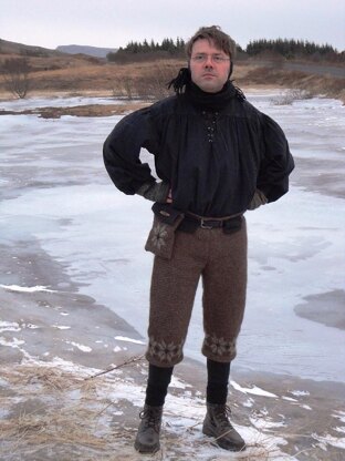 These trousers are inspired by Vikings and Icelandic traditions. The pattern is written for teenagers and adult men. You can make the legs to any length you like, but the pattern specifies ¾ length. The trousers are intended to be worn with a belt.