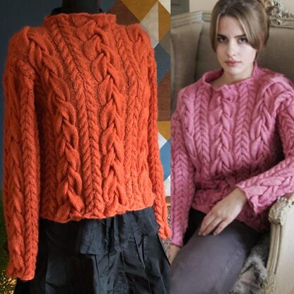 I've always loved this sweater! It's a fun knit too. I originally worked it in a worsted weight wool (pictured to the right), but it is even yummier in my Affetto Seta. I have redone the sizing and added two additional sizes!