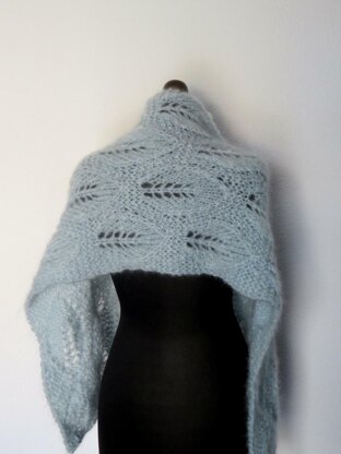 Inspired by botanical patterns, this design features repetitions of leaves, big enough to catch the eye but soft and fuzzy at the same time because of the nature of the yarn. It is a simple enough pattern, with basic decreases and increases, and because it is knitted with 2 strands of yarn it works up fast.