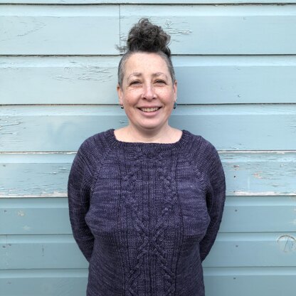 Vinalhaven Island Pullover features the same complex-looing cables along the front and down the back as the Vinalhaven Island Cardigan. It is a round-neck, raglan-sleeved pullover with no finishing except for weaving in the ends! The name comes from Vinalhaven, Maine, a favorite getaway for the dyer.