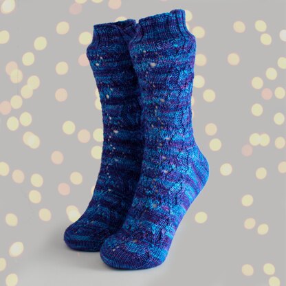 Worked in the round, Vincent contains both cuff-down and toe-up written directions and a chart for the pattern stitch. The pattern has instructions for an afterthought heel, but you may substitute whatever heel you enjoy using.