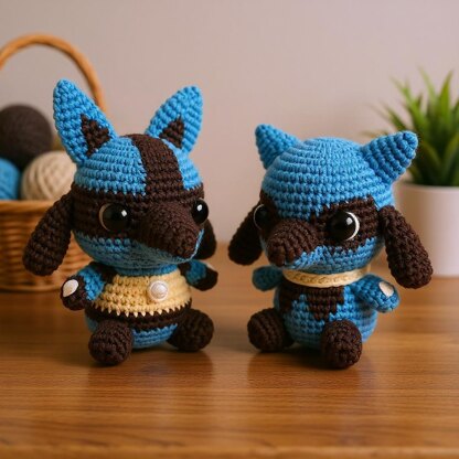 Yarns for both amigurumis: Blue, Dark Gray, Light Yellow, White