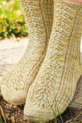 This lovely naturally-dyed yarn from local Portland dyer Stevanie Pico reminds me of mossy forest floors and dappled sunlight filtering through treetops. I couldn’t think of putting anything on these socks but leaves, and seeded rib panels seemed the perfect interlude between falling leaves down the front of the foot and climbing vines up the back. Named after our old neighborhood in Atlanta, these socks are totally inspired by nature.