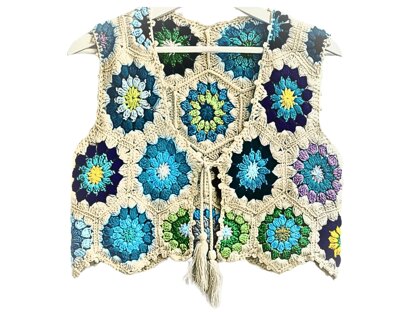 This easy to follow crochet pattern is for a retro looking vest. The sizes are small, medium, large, extra large and 2X from 32 inches up to 50 inches. The gauge is determined by the choice of yarn and the hook size. For the small medium and large use a lightweight number three yarn in various scrap colors.
