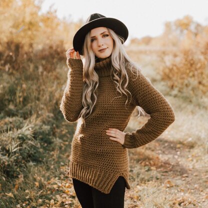 With its relaxed fit and slim, tapered sleeves, Vintage Moon can be comfortably worn under a parka, sheltering your neck from harsh winter winds. This sweater lands where the thigh begins (though you can adjust the length to suit your preference), and the sleeves extend slightly past the wrist for additional protection from the cold. This design feels warm and grounding, while adding a touch of poise to any outfit.