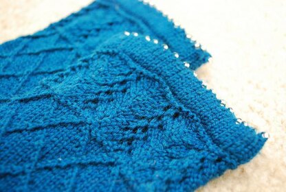 These socks are knit from the cuff down, starting with a beaded hem at the cuff, and use a heel flap and gusset and wide toe. The stitch patterns are both written and charted.