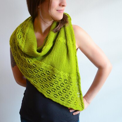 Viridis, in Latin, means green, verdant, fresh and vigorous, and often refers to plants. This shawl pattern is exactly this, a fresh pattern with not-too-long rows that creates a motivating knitting pace, with a construction simpler than most shawl patterns, and a pretty flowery stitch pattern. It is worked sideways and combines cables, lace and garter stitch, and can be made as big - or small! - as desired.