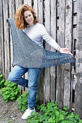 The shawl is an asymmetric triangle and is reversible, textured and coloured. With clean lines and an easy knit, it’s a great way to spice up your wardrobe.