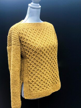 The Vivian sweater has a drop shoulder with a boat neck that will sure to be your favorite this winter. The front and the back of the sweater has a beautiful texture that is framed by a simple rib pattern.