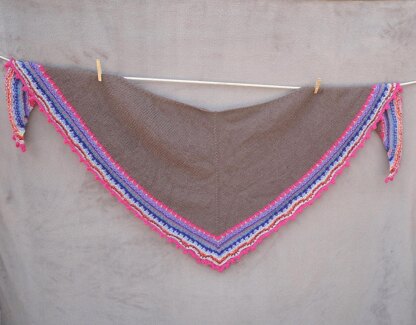 Lively, lovely Vivienne! This shawl is a must with a bright, colorful, cheerful border and long fronts to wrap, tie or pin.