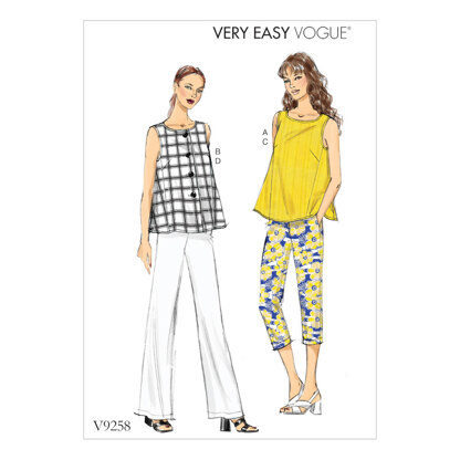 Vogue Misses' Sleeveless Tops with Pull-On Pants V9258 - Sewing Pattern