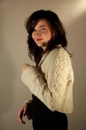 Vortex - silk fibre in SILKY yarn makes this shrug shine, and the intriguing lace pattern is reversible, so two looks in one garment.