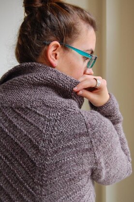 An asymmetric cardigan whose construction takes traditional chevrons for a joy ride.