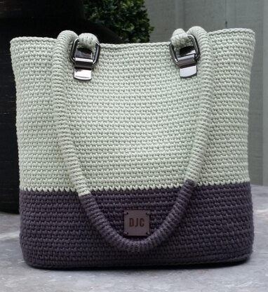 The Waistcoat Bag is 9 ½” long, 3 ¼” deep, and 9” tall. It features an elongated oval base, a dense fabric for the body so that it holds its structure, and self-made 3/8” wide round handles. The size can easily be adjusted by adding or subtracting chains to the base (1 chain equals ¼”), adding or subtracting base rounds (1 round equals ¼”), and/or adding or subtracting rounds to the body.