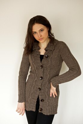 “Waiting for Spring” is warm simple design with basic raglan sleeve shaping with bit different cable details. The cardigan is worked flat from top down. The button band stitches are picked from the front pieces.