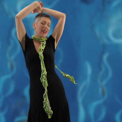Wakame is a Japanese seaweed, that grows abundantly throughout the coastal regions of Japan, and has been appreciated for hundreds of years both as an ingredient of traditional cuisine and for its beneficial properties on the body. It grows in turbulent waters and has a beautiful and elegant appearence when it fluctuates in the sea, with its long, broad leaves. This design, inspired by the Japanes alga has a lot of movement and textural interest in the fabric. Wakame is a skinny scarf formed by oblonged modules attached one to another while you knit. Each module is started from the center using the lighter color with a magic cast on, then worked in the round using increases to obtain a leaf shape. Then a ruffle is worked using the contrasting color to add movement and fun. Finally, a second ruffle is worked picking up stitches from the middle garter ridge of the module.