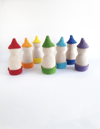 We create rainbow peg Doll in Cups toy to inspire your kids. The recommended since the birth of the baby up to 4 years old. Hope there will be a lot of fun crochet. For very babies who are just beginning to be mobile, what is more fun than getting down on the floor and playing with colorful toys? Stackable toys can improve children's minds in creativity Developing color Developing logic thinking Developing size recognition Developing hand-eye coordination skill which are vital as initial life lessons Counting practice Pattern in English. PDF file contains 6 pages. You can knit from any yarn you like and your favorite crochet The sample used yarn cotton 50%- acrylic 50% good twist-361yds 330m / 100gr- red 30yards , orange 30 yards, yellow 30 yards, green 30 yards , light blue 30yards , blue 30 yards, purple colors 30 yards , beige or white color for dolls 28Using the recommended yarn, total height of the toy 14 cm/5.7 inch