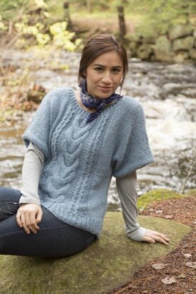 A relaxed-fitting dolman pullover with short sleeves and center cable panel. Knit up in the lighter than air Chateau, this sweater is a cozy quick knit on US 11 needles!
