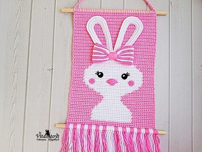 (PDF file) Crochet pattern a wall hanging - Panel Bunny. The pattern is available in English.