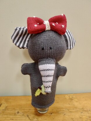 For anyone who loves knitting toys and anyone who loves puppets these two are sure to be a hit. Emily is a lovely dark grey elephant with a stripy trunk and ears. She is sporting a spectacular red bow with white polka dots and she is holding on to her apple with her trunk. Wallace is sure to stand out in the toy-box with his mane of sparkling red and he is a great fan of flowers and has picked a few which he is keeping in his special pocket. The puppets are not difficult to make but they require patience with sewing up to achieve a good finish, especially Wallace as you will be sewing into the eyelash yarn which can be a bit of a fiddle at times. The end result is definitely worth it though.