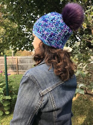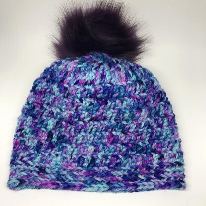 Materials ● Wool & Vinyl Heavy Metal Bulky, 100% Superwash Merino, Bulky (5) Wt. 3oz/100g, 106yd /100m – 1 skein, Hotel California or yarn of choice ● J/10/6.0 mm Crochet Hook or size needed to obtain gauge ● Tapestry Needle ● Optional Faux Fur Pom Pom