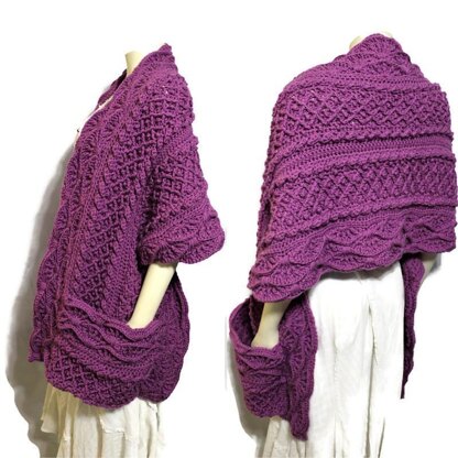 I wanted to make a pocket shawl that was very warm and lots of interesting texture. I love how this turned out. It is like wearing a warm hug.