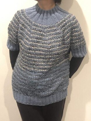 Warm quick jumper is the great choice for using leftovers. Do you have the leftovers that is not decided to use for yet? If so, please try this jumper!! You can use any materials, any weight. This pattern is worked from top down, worked in the round, so you can adjust the size as you like. And one round stripe makes the garment looks like a mosaic pattern. This sweater looks different according to the color mix, material mix you use. Enjoy making your own jumper.