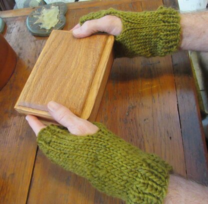Wasabi is an easy in-the-round project with a chunky yarn that are roomy enough for men. These can be knit up in an evening and be in use the next morning. Wasabi gloves are sans a thumb gusset for the simplest of fingerless glove construction. You can double strand worsted weight to get the same effect. No chunky yarn? Try double-stranding worsted weight or check out the Mulberry Hat & Gloves pattern for fingerless gloves.