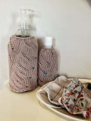 I've been keeping hand sanitizer at my front door since I first brought my new baby home, and now, it's accompanied by many other essentials for anyone entering or going out into the world. This is a recipe for a quick bottle cozy that can be used to make your sanitizing supplies look a little less sterile.
