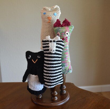 Easy knit designs! Body pattern is given in 2 styles: garter and stockinette. When used as a washcloth, puppet is worn with face on the back of the hand so buttons don’t rub. For young children, sew felt circles in place of the button eyes. Rinse with clean water after using. Squeeze out water and allow them to dry completely. Discard puppet if it becomes worn or has loose parts. This product is intended to be used with adult supervision. Contains small parts and may not suitable for unattended young children. Be sure all embellishments are securely attached before use.
