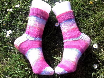This is a knitting pattern for a calf length sock, although it can be altered to the require length by increasing or decreasing the number of rounds knitted.