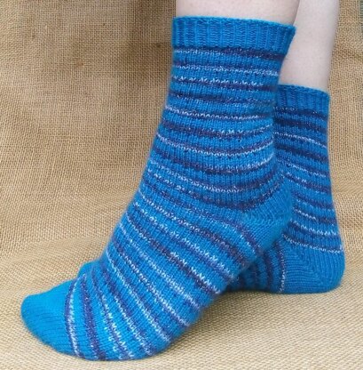 Inspired by the tiny cogs used in watches, a slipped stitch pattern makes a simple striped sock a little more interesting. Worked from the toe up or top down (choose your preferred method) with a German short row heel, this pattern is perfect for using up leftovers.