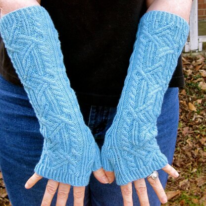 For “Cable-Lovers” everywhere, this is the fingerless mitt pattern for you. There are two distinct cables in the mitt. The center cable is quite striking and is bordered by a second lesser known cable stitch..The underside cable is the same as one of the forearm cable, making this one of the easier of my mitt patterns, although it is still not a beginner pattern, by any means. But if you are a lover of cable knitting, these mitts will be fun for you to both make and wear and will allow you to text, type and knit in style and warmth.