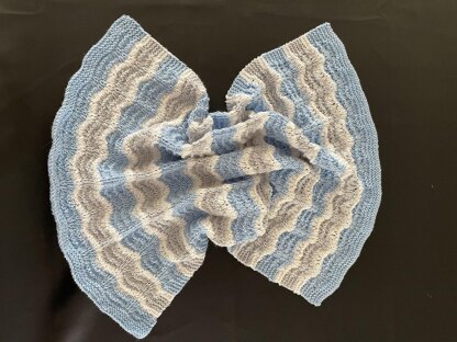 This Car Seat Wave Baby Blanket is an easy pattern consisting of only knit, purl, knit front and back and knit 2 together stitches, making it great for the motivated beginner. Video links proided, if needed.