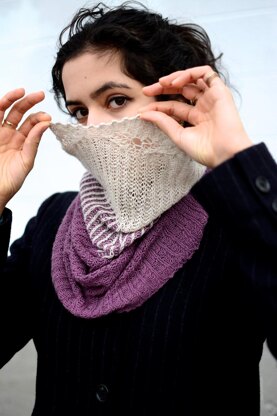 Designed with mYak Tibetan Cashmere Lace, this two-color cowl begins at the bottom edge with a picot cast on. It is worked in brioche in the round to the top edge, where it is finished with a few rounds of brioche lace.