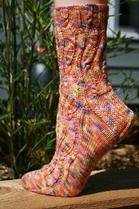Don’t get dizzy at the sight of these socks with cables that wave lazily down the leg. A fun twist on a simple cable pattern!