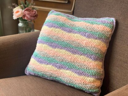 You can chose to make this cushion with 2 to 5 different colours of aran weight (worsted) yarn and make your Wavy Bright Cushion your own!