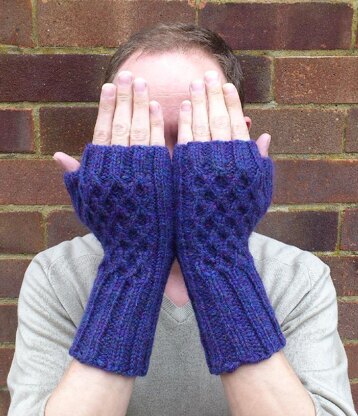 I collect pretty singles/pairs of skeins. I'm also addicted to fingerless gloves. This is a good combination, except I don't always know how long I can make the gloves before I'll run out of yarn. Lots of glove patterns I see start at the elbow end, which inevitably means I'll end up frogging when I run out of yarn, or regretting that I didn't bite the bullet and make it the length I wanted to. Solution? Write my own pattern, fingers down.