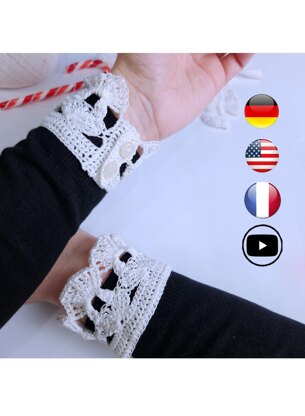 - ❤️Materials: • 100% Cotton, Weight Lace 0, • Crochet hook #1.5 mm • 2 buttons for each cuff ( 4 buttons for pair )
