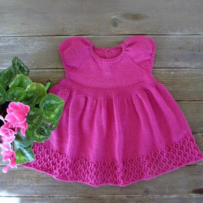 Wee Heather May has a vintage feel to it, and will become an heirloom piece to be handed down from baby to baby. Top down construction and a full princess skirt and puff sleeves. This is designed with positive ease, so there will be lots of room to grow into a tunic. Less full skirt shown, the yardages listed are for the less full skirt.