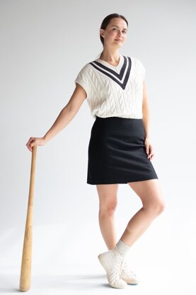 NOTES The vest is worked flat in pieces and seamed. The front is worked to the shoulder with deep V shaping, then the front neckband is picked up and worked flat. The collar and armhole bands are picked up and worked in the round. Cable pattern may be worked from chart or text. Choose the size with 8–12” of positive ease.